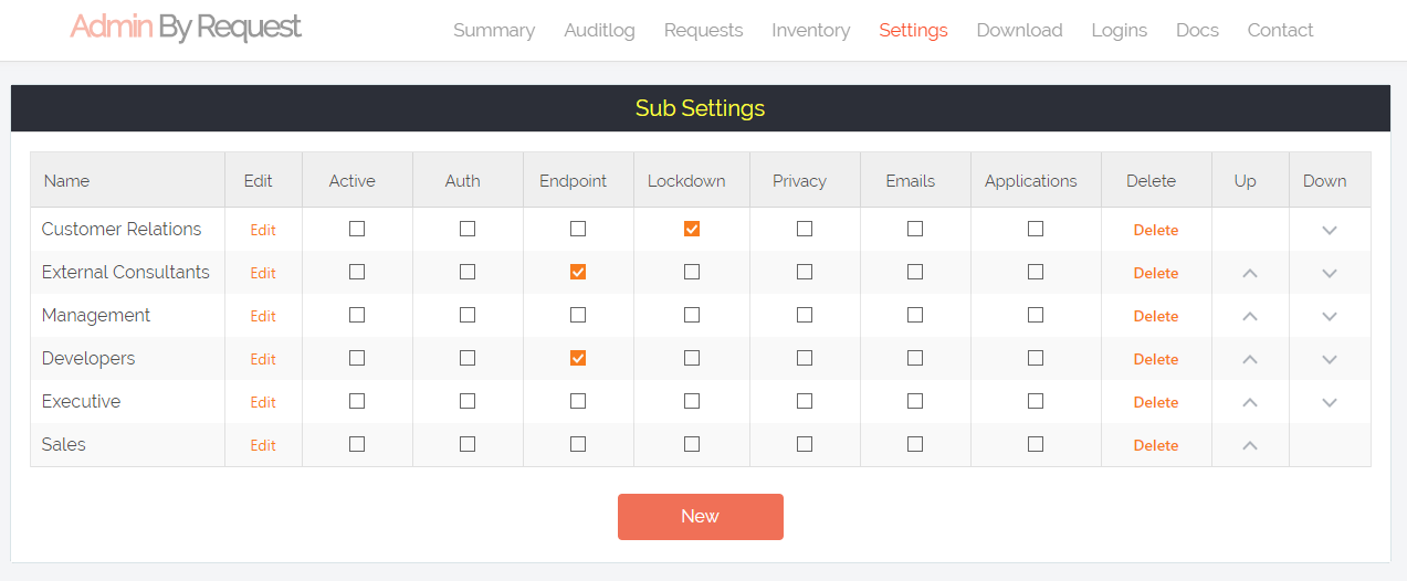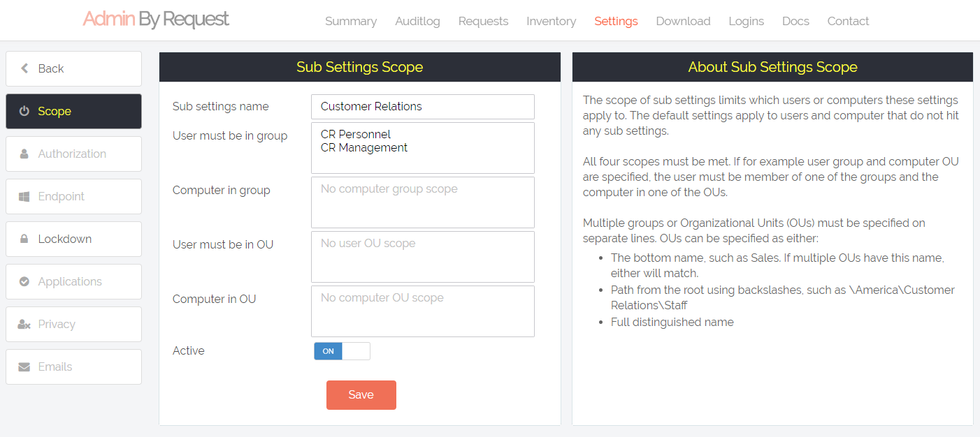Admin By Request pozwala na zdefiniowanie tzw. „podustawień”, które w praktyce pozwalają na precyzyjne zarządzanie dostępem uprzywilejowanym.