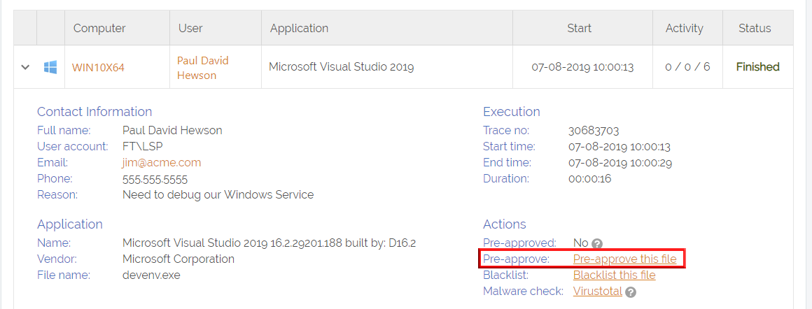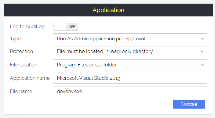 Stałe kontrolowanie i przyznawanie lub odrzucanie wniosków o dostęp uprzywilejowany może być uciążliwe dla administratorów, którzy obsługują panel autoryzacyjny. Niektórzy użytkownicy mają uzasadnioną potrzebę ciągłego uruchamiania danych aplikacji z uprawnieniami administratora. Przykładem może być programista korzystający z Visual Studio i okazjonalnie mający potrzebę uruchomienia programu z podwyższonymi uprawnieniami. Rozwiązaniem dla takich użytkowników może być wskazanie aplikacji lub plików, z których często korzystają i użycie opcji wstępnego zatwierdzania wniosków. Wówczas dostęp będzie do nich przyznawany bez potrzeby autoryzacji, przy zachowaniu tego ograniczenia dla innych, niewskazanych w ustawieniach zasobów.